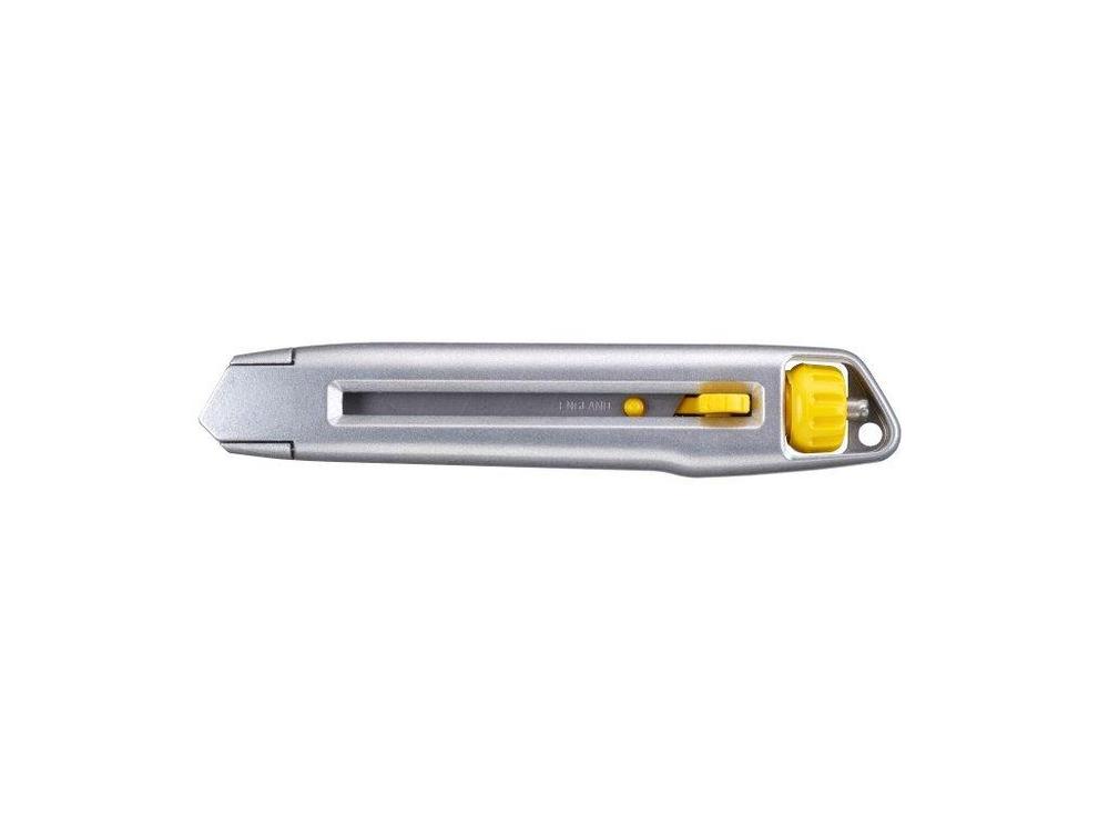 Vysoce kvalitní profesionální odlamovací nůž 1-10-018 kompatibilní se všemi typy čepelek o výšce 18 mm. Tento nůž je vyroben z vysoce kvalitního lisovaného kovu. Posuvný jezdec pro nastavení polohy odlamovací čepele spolu s patentovaným systémem uzamčení těla Interlock umožňují pevné podélné držení čepele. Díky své konstrukci a robustnosti je určen pro razantnější řezání tužších materiálů. Nůž je vhodný i pro práci v rukavicích. Rozměry: 165x30x20mm