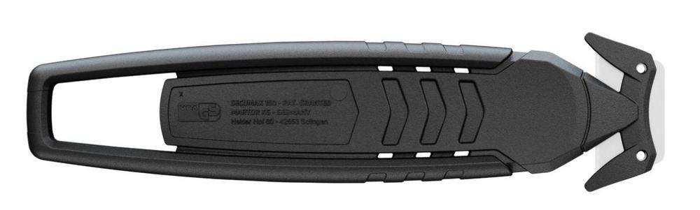 Bezpečnostní nůž Martor Secumax 150001.08 je nůž s pevně instalovanou nevýměnnou čepelí. Mezi hlavní charakteristiky patří lehkost a pevnost, díky umělé hmotě s příměsí skelných vláken. Nůž je vhodný pro řezání a rozřezávání kartonů i seškrabání např. zbytků lepicí pásky, štítků apod. Nůž SECUMAX 150 je univerzální, je určen na řezání, ale také na rozříznutí lepicí pásky na kartonu nebo na seškrabání zbytků materiálu z hladkých povrchů. Čepele dostatečně široké a obě ostří spolehlivě otevřou i tří až pěti-vrstvé kartony. Vodící plochy vpravo na přední části rukojeti napomáhají vést řez diagonálně a snadněji proniknout materiálem. Čepel je zakrytá, nepřijde do kontaktu s uživatelem ani se zbožím. Tím je zajištěno nejvyšší zabezpečení jak před zraněním, tak před poškozením zboží. Rozměry: 148x11x37,2 mm Váha 24,4 g