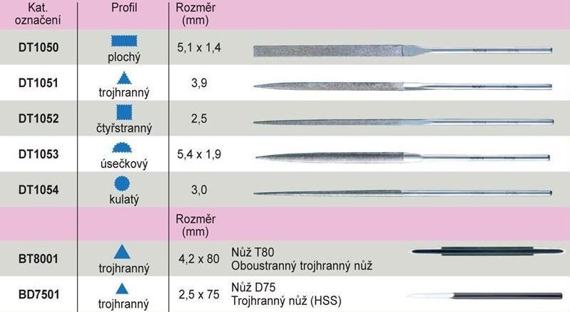 Celková délka: 140 mm Délka diamantové vrstvy: 70 mm Průměr stopky: 3 mm Obsahuje: YT rukojeť, nože BD7501 a BT8001, pilníky - plochý - tříhranný - čtyřhranný - úsečový - kruhový.