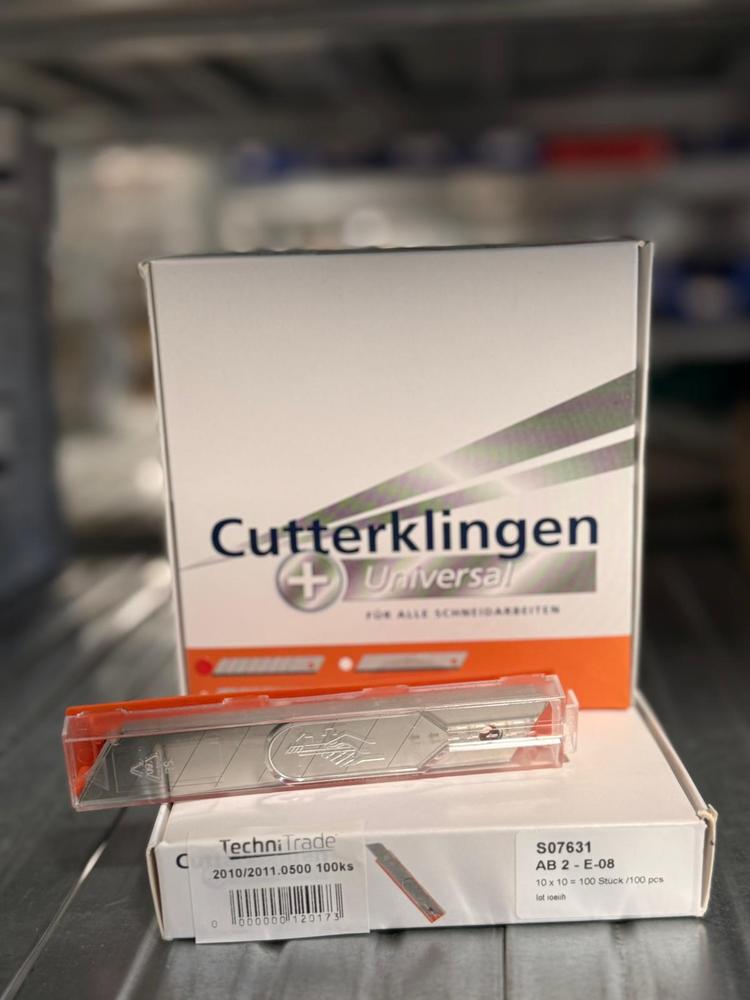 Baleno v plastovém bezpečnostním boxu po 10 ks. Pasuje do všech standardních držáků čepelí. Je k dispozici bez povrchové úpravy. Používá se v sádrokartonářském průmyslu k řezání koberců a fólií a k odizolování kabelů. Produktové označení: AB 2-E-08