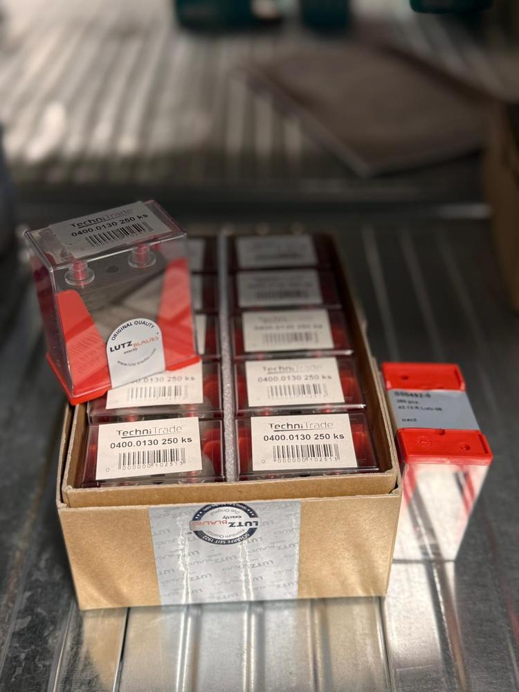 Baleno v plastovém bezpečnostním boxu po 250 ks. Produktové označení: 43.13 R Lutz-08
