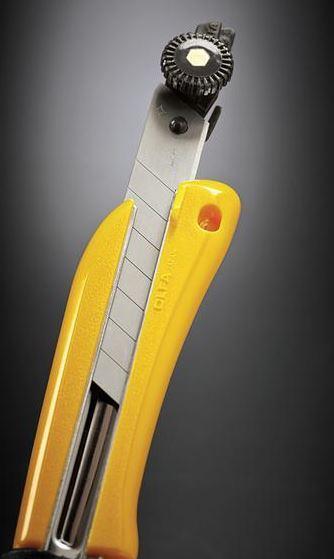 Řemeslnický řezač OLFA s ergonomicky tvarovanou plastovou rukojetí. Opatřený pojistným kolečkem pro aretaci posunu čepele. Všestranné použití. Vhodný pro stavebnictví a průmyslovou výrobu, pro suchou stavbu (sádrokartony, akustiské a tepelné izolace), podlahářské práce, řezání koberců a PVC, řezání gumových a plastových materiálů, papírových a kartonových výrobků, řezání dřeva, dýhy, balsy atd. Instalovaná čepel: LB Rozměry : 150x40x15 mm