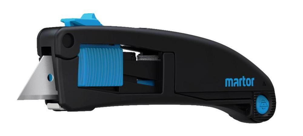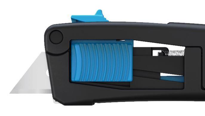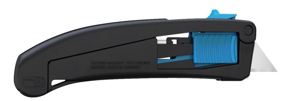 Dokonalá manipulace – ze všech stran. Trojmístný posunovač - levý, pravý, shora Tvarovaná zadní část nože zajišťuje, že vám rukojeť z umělé hmoty teď sedí ještě lépe v ruce. K výměně čepele není zapotřebí žádných dalších pomůcek. Pouze stisknete tlačítko pro výměnu čepele a otevřete rukojeť. Nosič čepele se posune dopředu a můžete vyměnit čepel. Výměna je velmi snadná. Nůž SECUPRO MAXISAFE je uzpůsoben i pro intenzivní tlak, u otvoru pro výstup čepele je kovová část chránící před obrušováním. Plně automatické zatažení čepele u nože SECUPRO MAXISAFE garantuje nejvyšší zabepečení a ochranu před pořezáním. Čepel se ihned zatáhne zpět do rukojeti, jakmile ztratí kontakt s řezaným materiálem, i tehdy, pokud je posunovač čepele stlačený. Rozměry: 148x18x42 mm Váha: 64g Materiál: Sklolaminát Instalovaná čepel: Trapézová 99