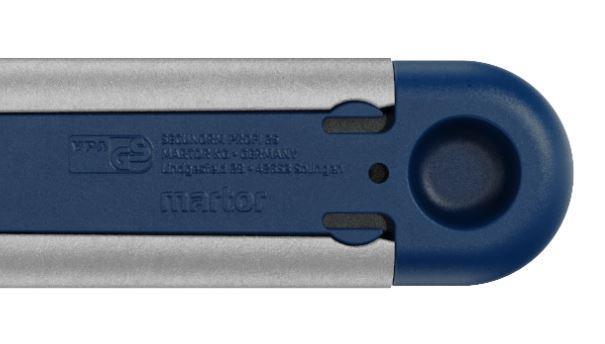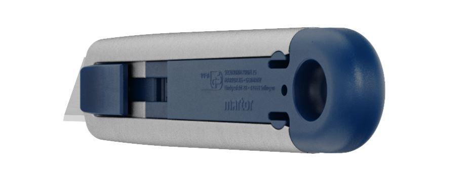 Bezpečnostní nůž Martor Secunorm PROFI25 MDP 120700 je nůž s instalovanou profesionální trapézovou čepelkou s hlubokým břitem. Mezi hlavní charakteristiky patří jednoduchý design, spolehlivá pružina ovládající čepel a bezpečná a rychlá výměna čepele. Řezací nástroj – nebo jen jeho části – se při práci mohou ztratit. Ale jen na chvíli. Plast zjistitelný detektorem kovu zaručuje, že jej opět rychle naleznete. Rukojeť bez barevného nátěru snižuje riziko znečištění v průběhu pracovního procesu. Hloubka řezu 21 mm. Uvnitř hliníkové rukojeti nože SECUNORM PROFI25 MDP je plastová vložka s čepelí. Robustní design předurčuje nůž pro časté řezání a jeho dlouhou životnost. Výměna čepele: Musíte pouze vysunout umělohmotnou vložku zjistitelnou detektorem kovu z rukojeti a starou čepel vyměnit za novou. Předtím než musíte čepel vyměnit ji pouze otočte. Životnost čepele se zdvojnásobí a nůž řeže jako nový. Rozměry: 143x17x31 mm Váha: 84,5 g Instalovaná čepel: 199.70
