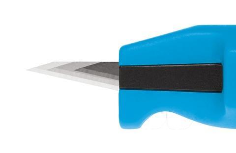Skalpel TRIMMEX CUTTOGRAF 69111.00 s výměnnou čepelkou. Pohodlně řeže i začišťuje. U této varianty je instalovaná skalpelová čepel tloušťky 0,4 mm, vhodná zejména pro modelářské činnosti a na řezání papíru a lepenky. Hloubku řezu si můžete nastavovat individuálně – v závislosti na materiálu a použití. Dalšími charakteristikami jsou snadná výměna čepele, nízká hmotnost, otvor pro zavěšení, ať ho můžete mít vždy po ruce, ergonomicky tvarovaná rukojeť. Rozměry: 145x16x18 mm Váha 24 g