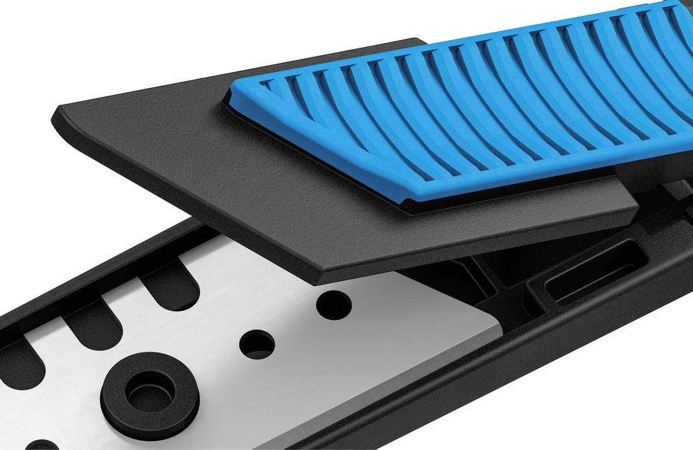 Tlačítko pro výměnu čepele s intuitivním použitím. Stačí jedno stisknutí a už můžete vytáhnout nosič čepele s bezpečně upevněnou čepelí.