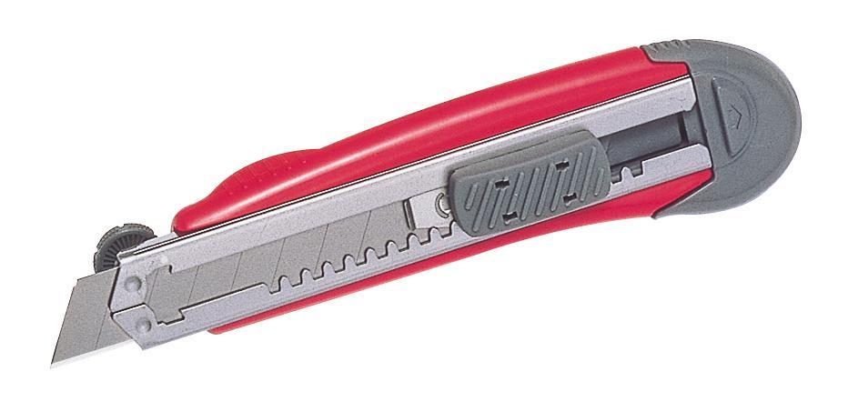 Vysoce kvalitní profesionální odlamovací nůž L-21 kompatibilní se všemi typy čepelek o výšce 18 mm. Tento ergonomický nůž je vyroben z vysoce kvalitního tvrzeného plastu. Nůž je vybaven systémem "Auto Feeder", který slouží k automatickému doplnění náhradní čepele, a otočným šroubem, který fixuje čepelku a zamezuje tak jejímu pohybu v liště. Jednoduchým otočením čepele je nůž připraven pro použití leváky. Typ zámku čepele: Auto-lock; Rozměry : 160x40x25mm Instalovaná čepel: LB-H