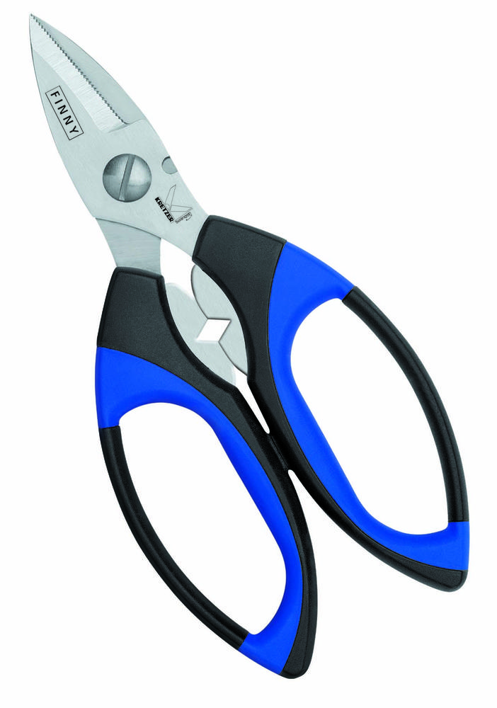 Víceúčelové nůžky FINNY 773718 jsou robustní nerezové nůžky se speciálním ostřím a ergonomickou rukojetí pro dlouhodobé/celodenní používání. Nůžky jsou určené zejména na stříhání pro stříhání kůže, elektrických kabelů, květin, textilu, čemuž napomáhá i upínací šroub určený pro nastavitelnost tuhosti střihu. Nůžky jsou vyrobené z vysoce kvalitního materiálu, jak oceli, tak vysoce tvrzeného plastu kombinovaného s pryží pro snížení otlaku ruky. Upnutí čepelí šroubem poskytuje maximální komfort při celodenním používání. Rukojeť s velkými oky umožňuje práci i v rukavicích. Mikrozoubky na jedné čepeli.