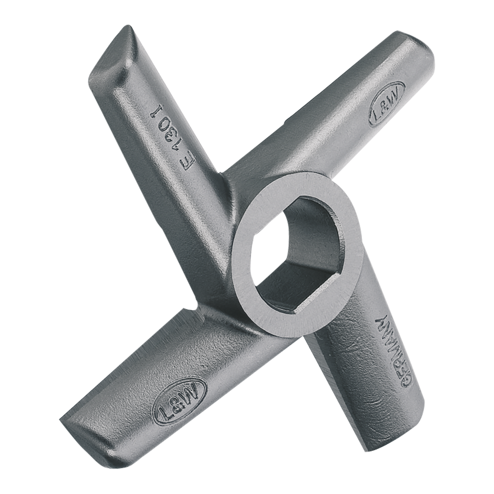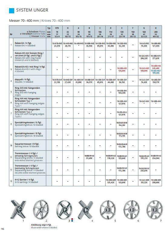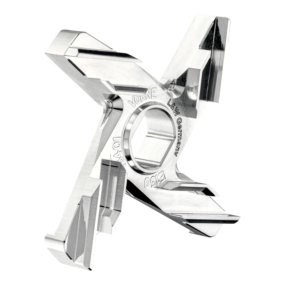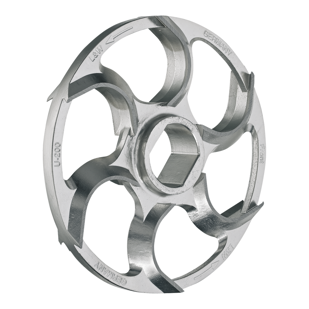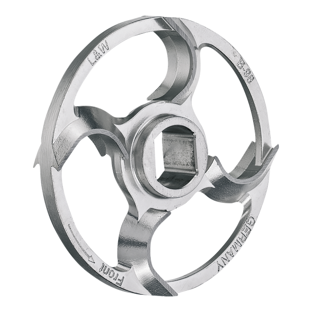 Řezný nůž UNGER od výrobce Lumbeck & Wolter je součástí řezné sady profesionálních mlýnků na maso používaných v potravinářských provozech, řeznictvích i gastronomii. Nože jsou navrženy pro použití v systému UNGER, kde spolupracují s mlecí deskou a dalšími komponenty řezné sady a zajišťují efektivní a rovnoměrné mletí masa.