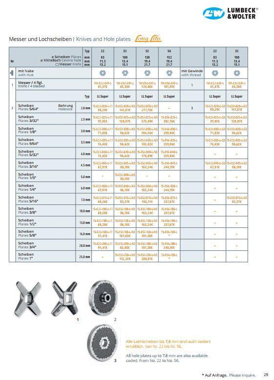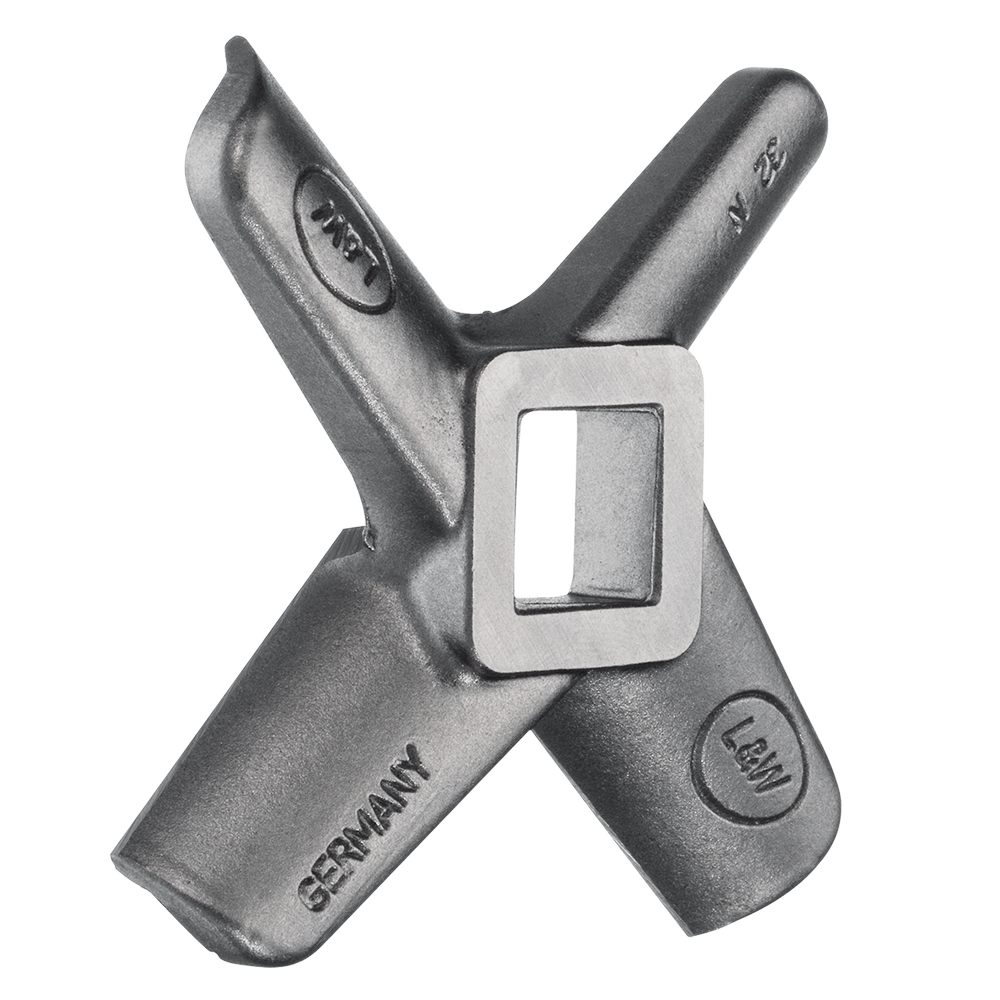Řezný nůž Enterprise od výrobce Lumbeck & Wolter je určen pro profesionální mlýnky na maso používané v řeznictvích, gastronomii i potravinářském průmyslu. Nůž je součástí řezné sady systému Enterprise, kde spolupracuje s mlecí deskou a zajišťuje efektivní a rovnoměrné zpracování suroviny.