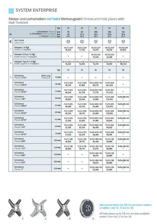 Řezný systém Enterprise je založen na jednodušší dvoudílné řezné sadě, která obsahuje jeden nůž a jednu mlecí desku. Tento systém je často používán při výrobě mletého masa a dalších masných výrobků.
