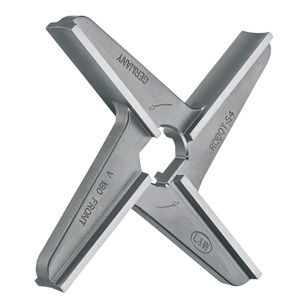 Řezný nůž systému Excelsior / Velati od výrobce Lumbeck & Wolter je určen pro profesionální mlýnky na maso používané v potravinářském průmyslu, řeznictvích a gastronomii. Nůž je součástí řezné sady systému Excelsior / Velati, kde spolupracuje s mlecí deskou a dalšími komponenty řezného systému a zajišťuje efektivní a rovnoměrné zpracování surovin. Systém Excelsior / Velati umožňuje různé konfigurace řezných sad – od jednoduchých kombinací jedné desky a nože až po vícestupňové sestavy s vyšším výkonem. Tyto systémy se používají zejména při zpracování masa, výrobě uzenin a dalších potravinářských výrobků. Nože jsou vyráběny z kvalitní nástrojové oceli, která zajišťuje vysokou odolnost proti opotřebení, dlouhou životnost a stabilní výkon i při intenzivním profesionálním provozu. Materiál: nástrojová ocel (Toolsteel) Typ nože: - dvojitý / 4-břitý - jednostranný / 4-břitý - Robot dvojitý / 4-břitý - Robot jednostranný / 4-břitý - Robot-S4 Průměr (typ stroje): - SO – 70 mm - Velati – 150 mm - Velati – 180 mm - Velati – 200 mm - Velati – 220 mm - Velati – 250 mm